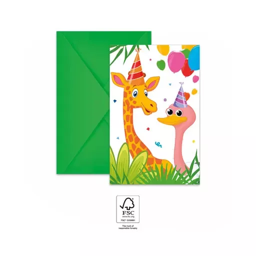 Dzsungel Balloons party meghívó 6 db-os FSC